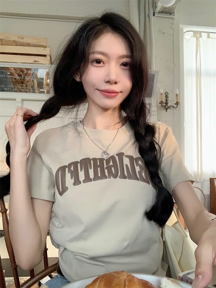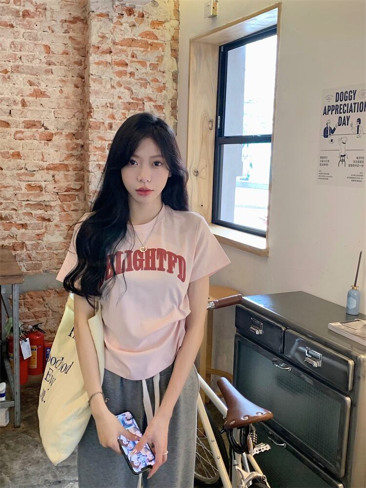 【韓国通販 dgo】3colors 立体レタープリントTシャツ ホワイト/ミルクコーヒー/ピンク(W3811)