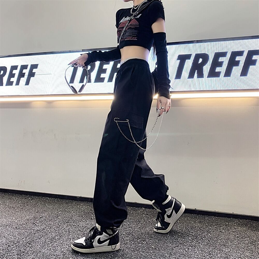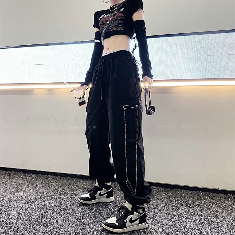 【韓国通販 dgo】UNISEX ストレート チェーン付き カーゴパンツ ブラック(M3810)トレンドアイテム