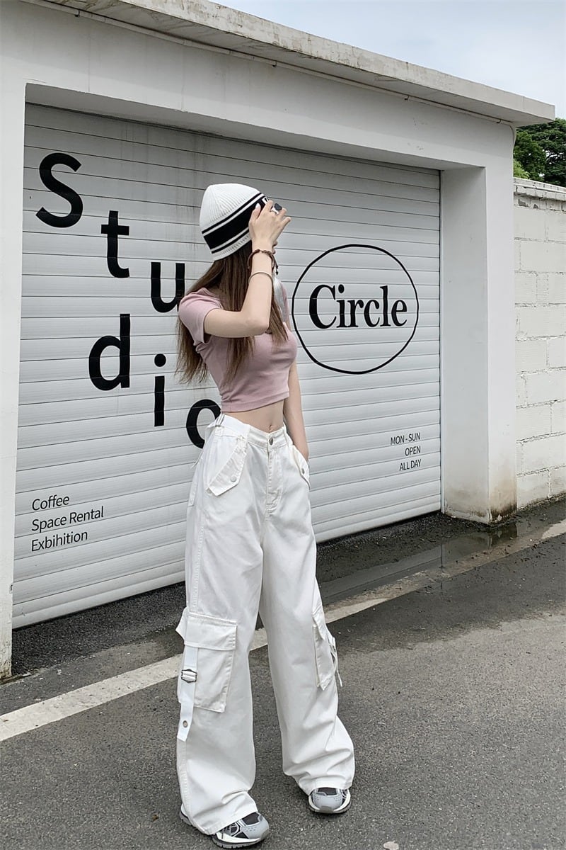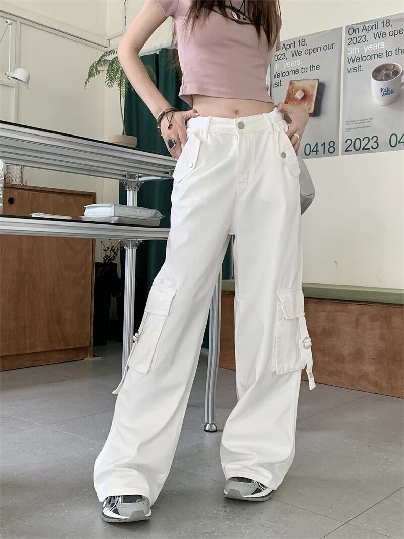 【韓国通販 dgo】ハイウエスト ホワイト ストレートカーゴパンツ(W3809)トレンドアイテム