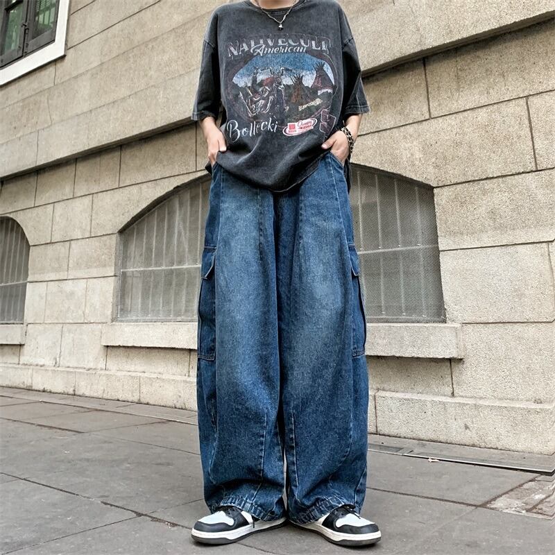 【韓国通販 dgo】UNISEX ワイドレッグツーリング ジーンズ ヴィンテージブルー(M3804)