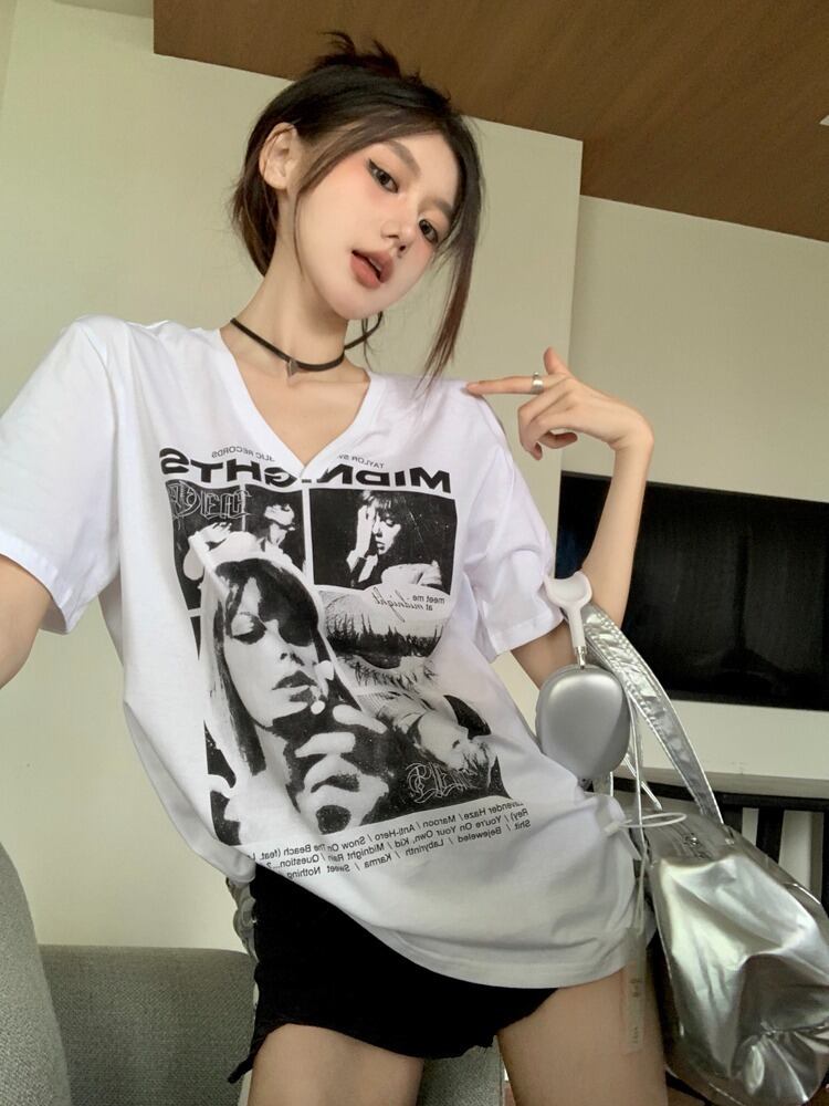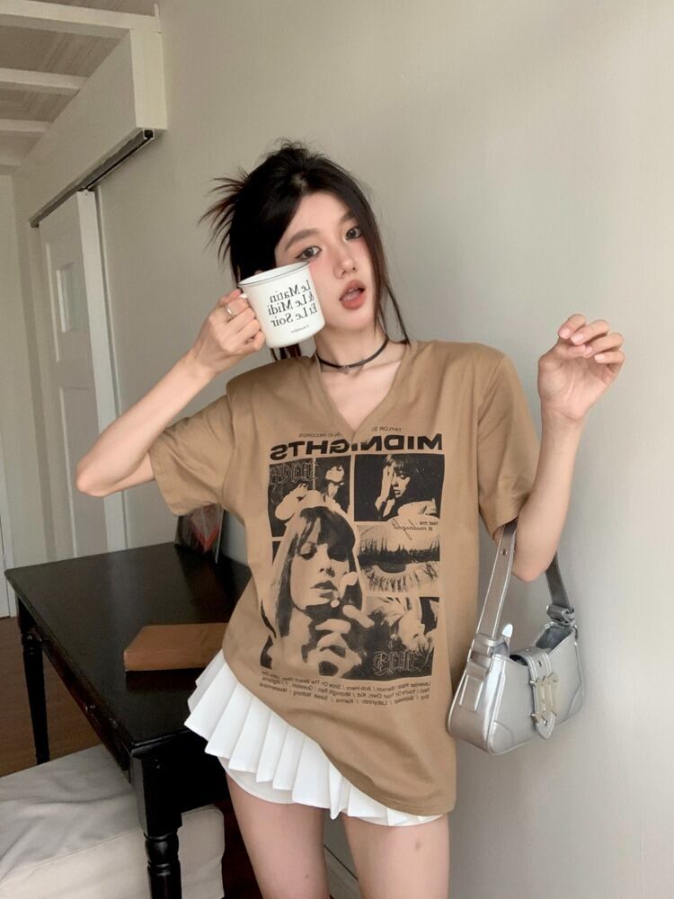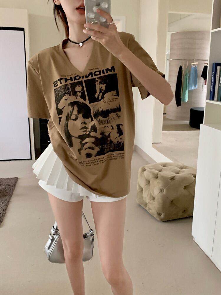 【韓国通販 dgo】2colors フォトプリントTシャツ ホワイト/カーキ(W3801)センス溢れるファッションitem