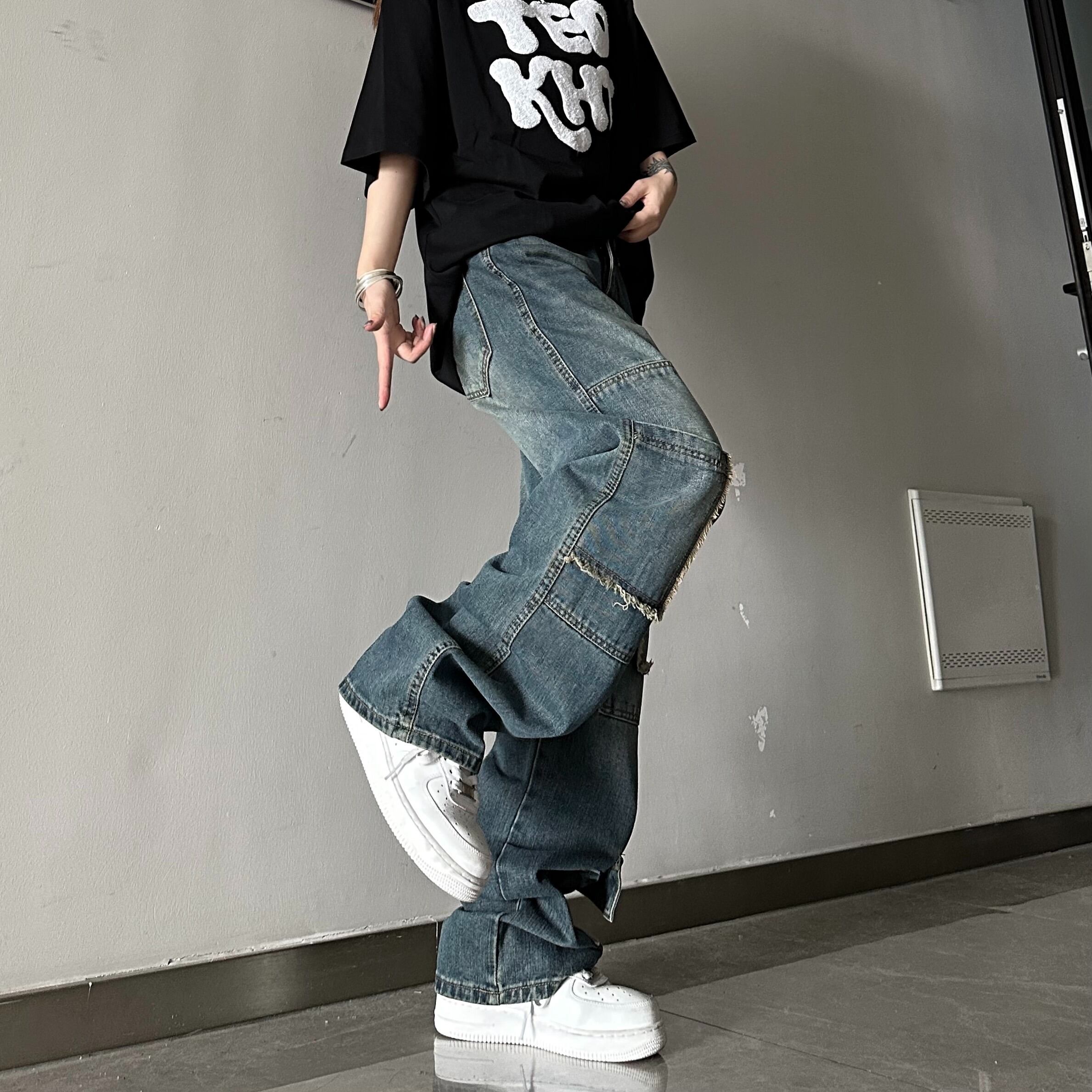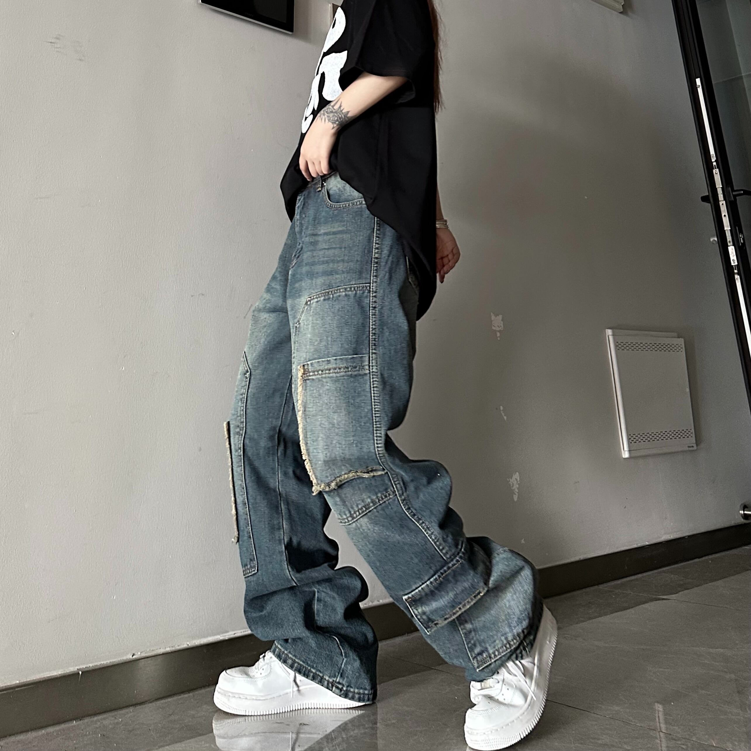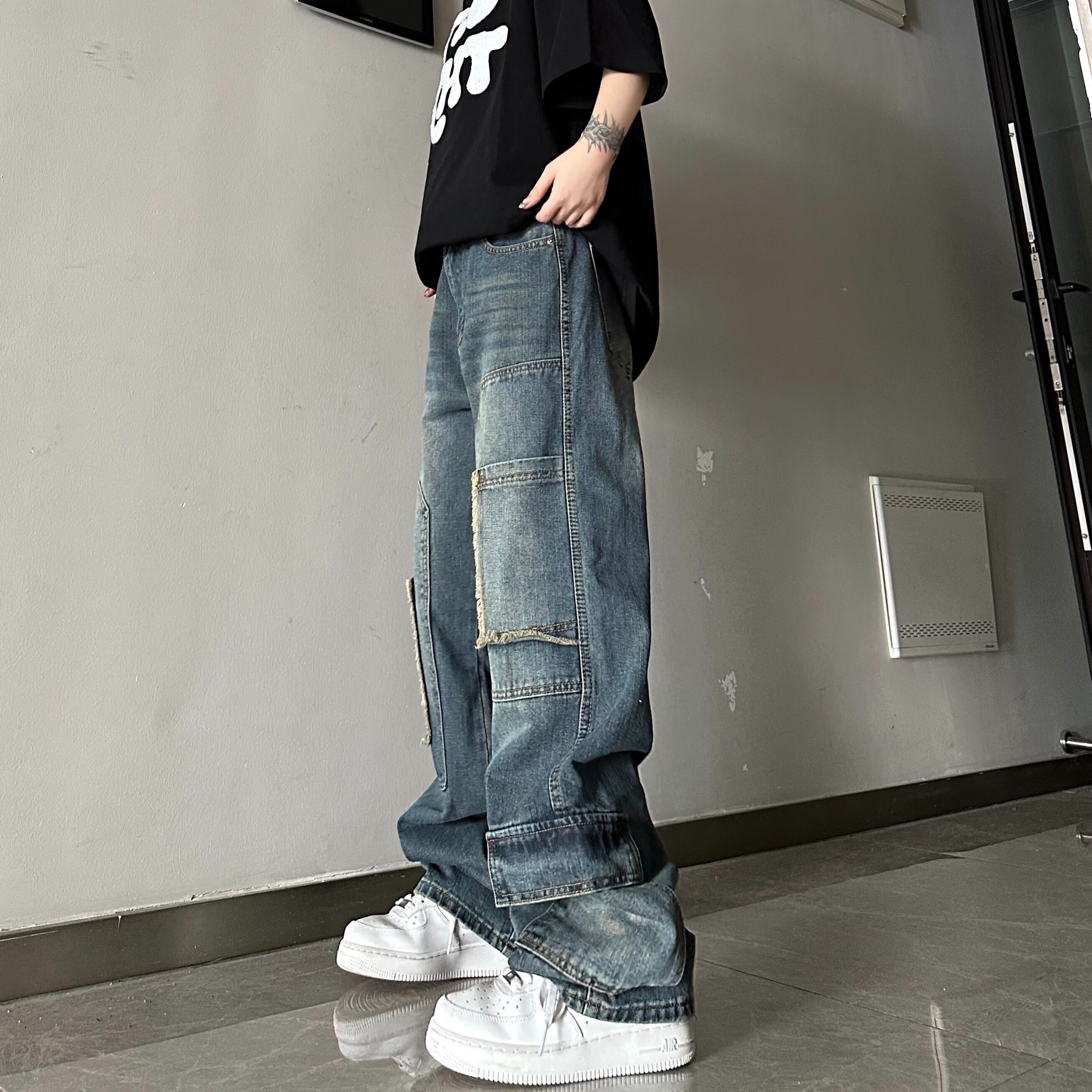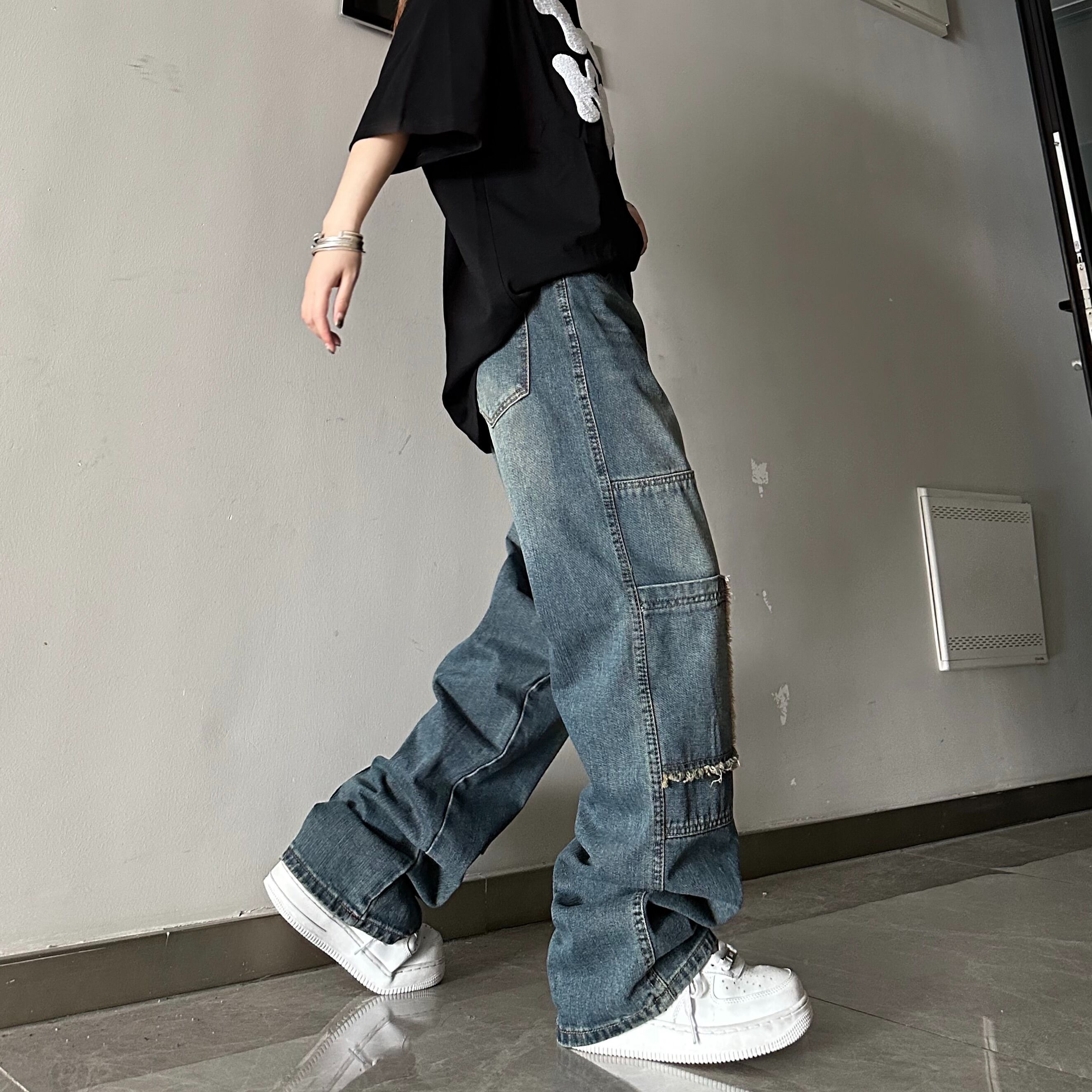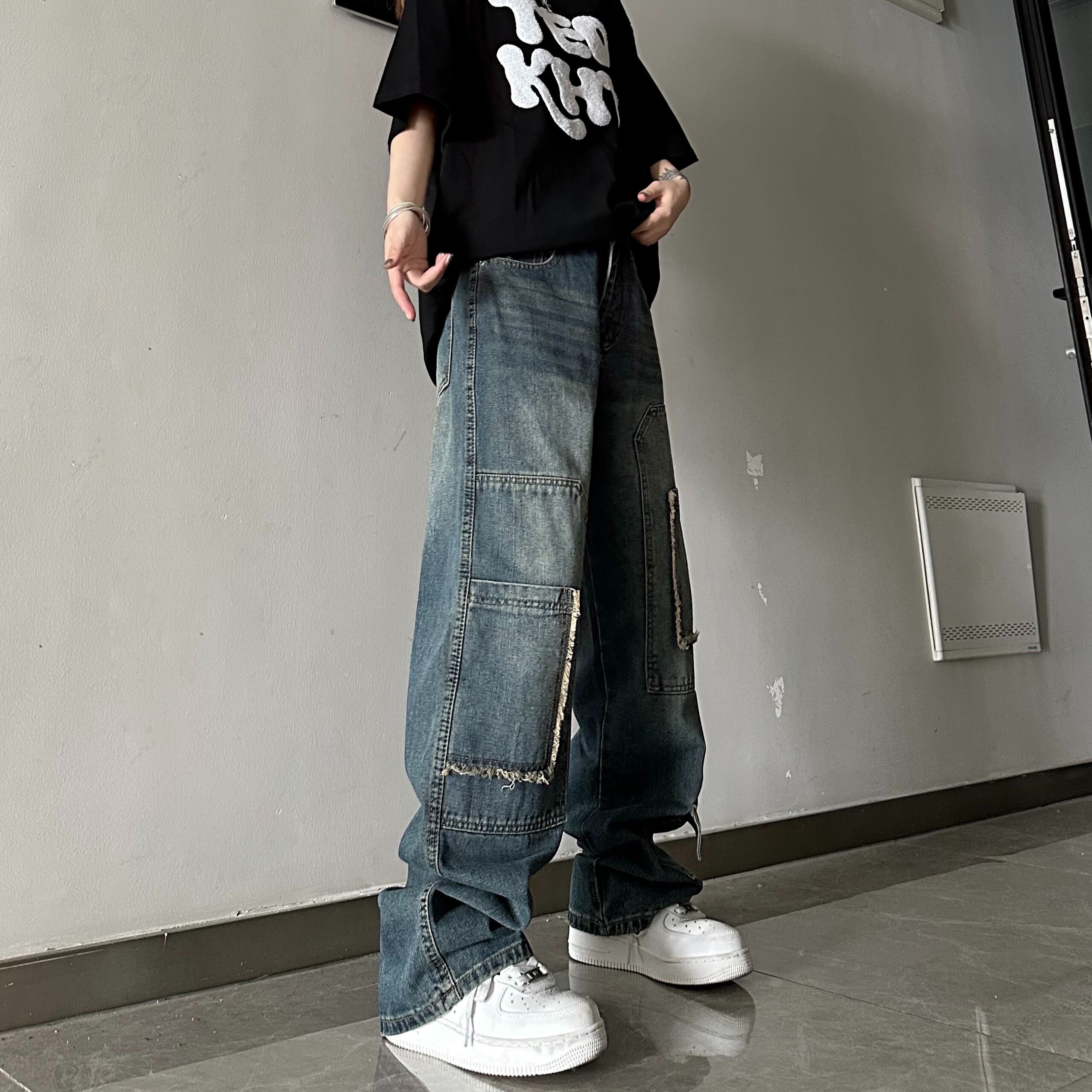 【韓国通販 dgo】UNISEX ローエッジ マルチポケット ジーンズ ブルー(M3800)トレンドアイテム