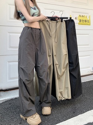 【韓国通販 dgo】3colors ハイウエスト ワイドレッグ カーゴパンツ グレー/ライトカーキ/ブラック(W3799)センス溢れるファッションitem