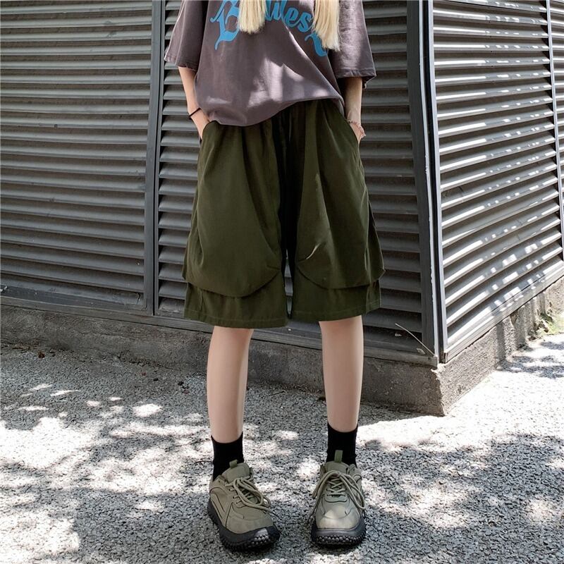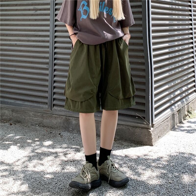 【韓国通販 dgo】UNISEX 2colors ワイドレッグハーフパンツ アーミーグリーン/ブラック(M3798)センス溢れるファッションitem