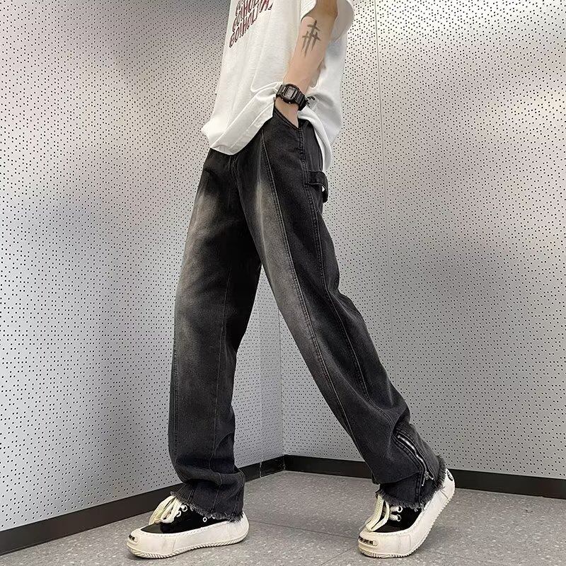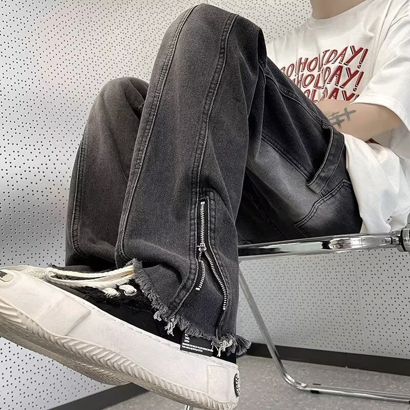 【韓国通販 dgo】UNISEX 2colors ストリートローエッジジーンズ ブラック/ブルー(M3792)