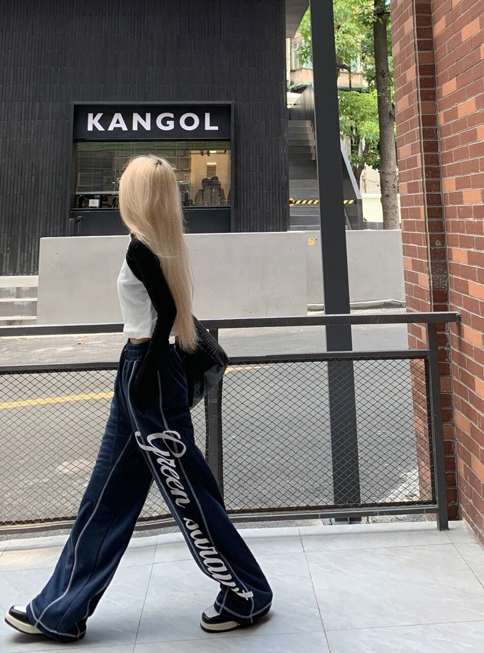 【韓国通販 dgo】レタープリント カジュアルパンツ ネイビーブルー(W3911)