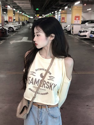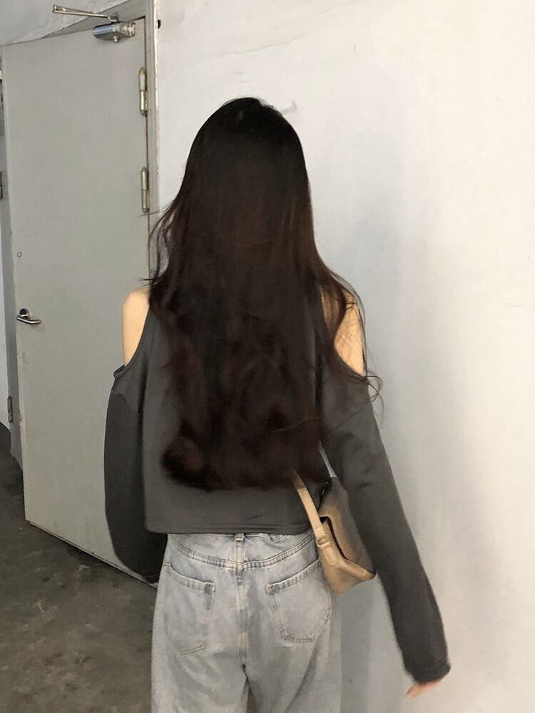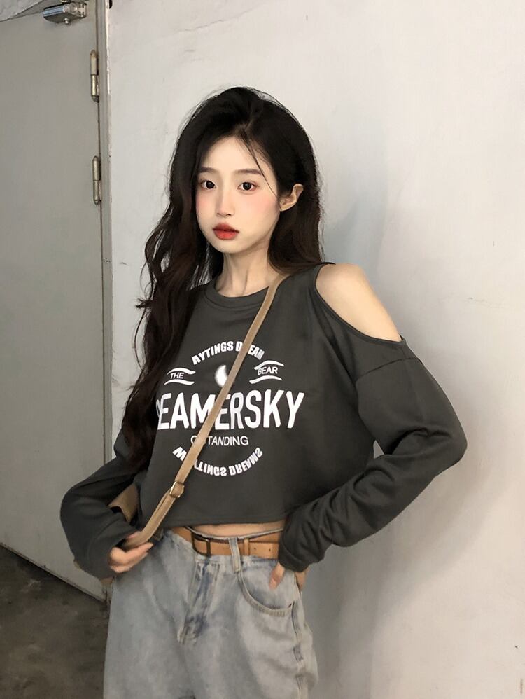 【韓国通販 dgo】2colors レタープリント オフショルスウェット ダークグレー/アイボリー(W3907)トレンドアイテム