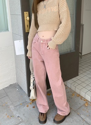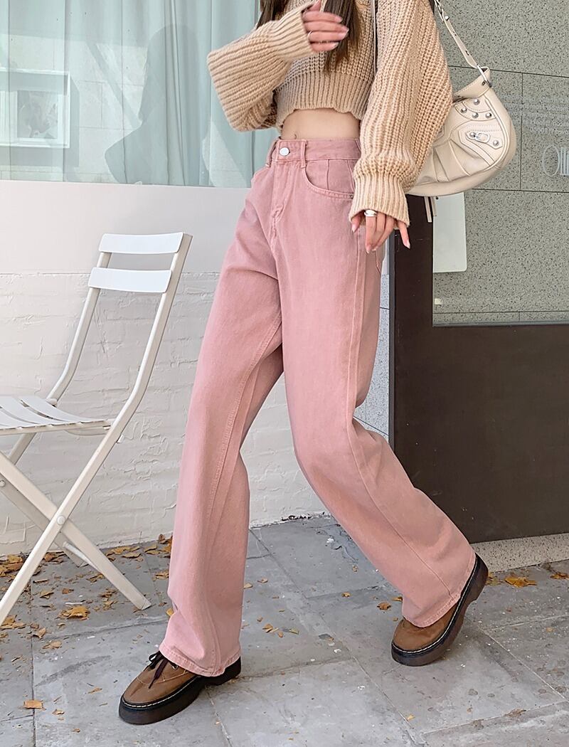 【韓国通販 dgo】UNISEX ハイウエスト ストレートジーンズ ピンク(W3957)トレンドアイテム