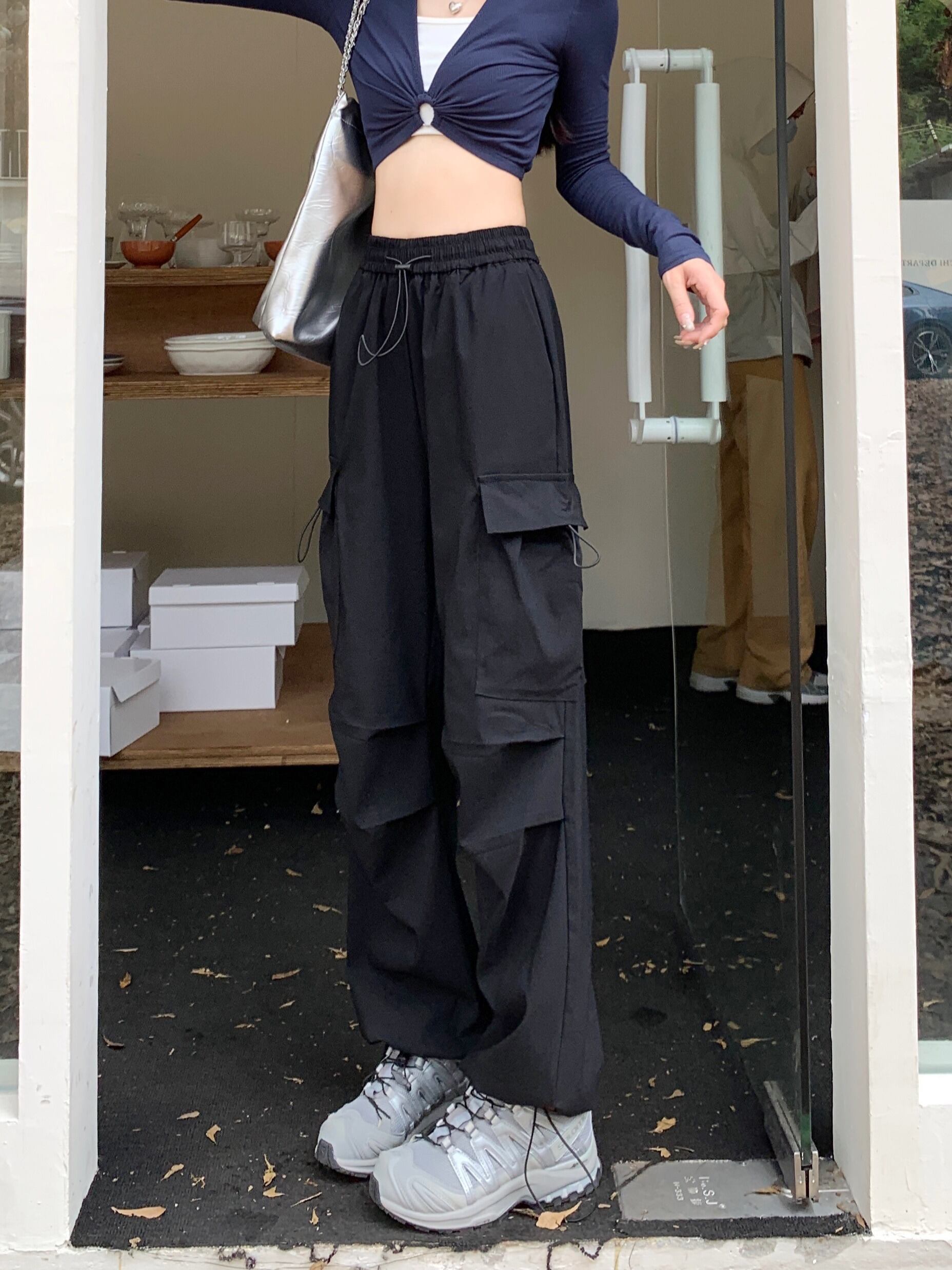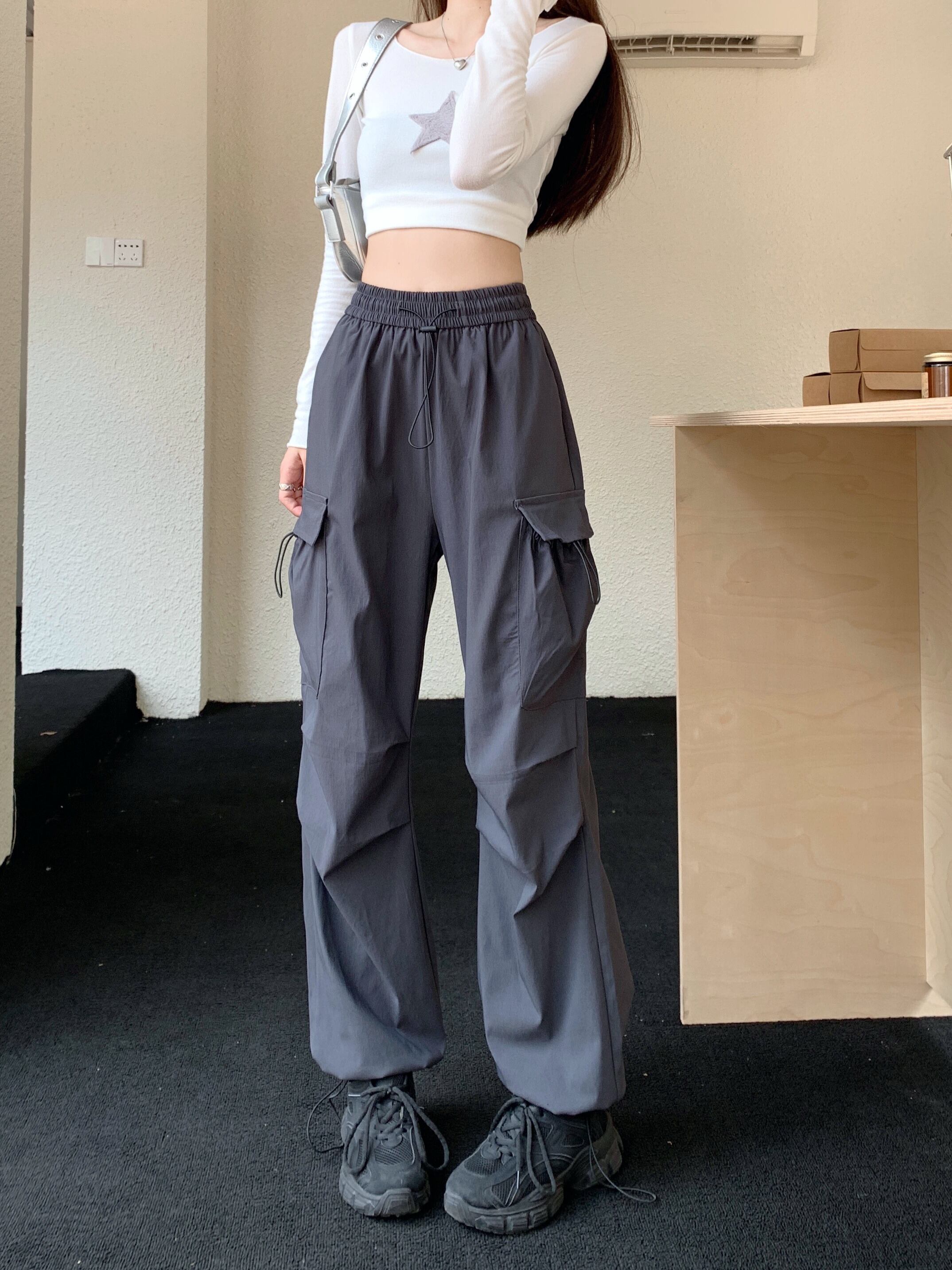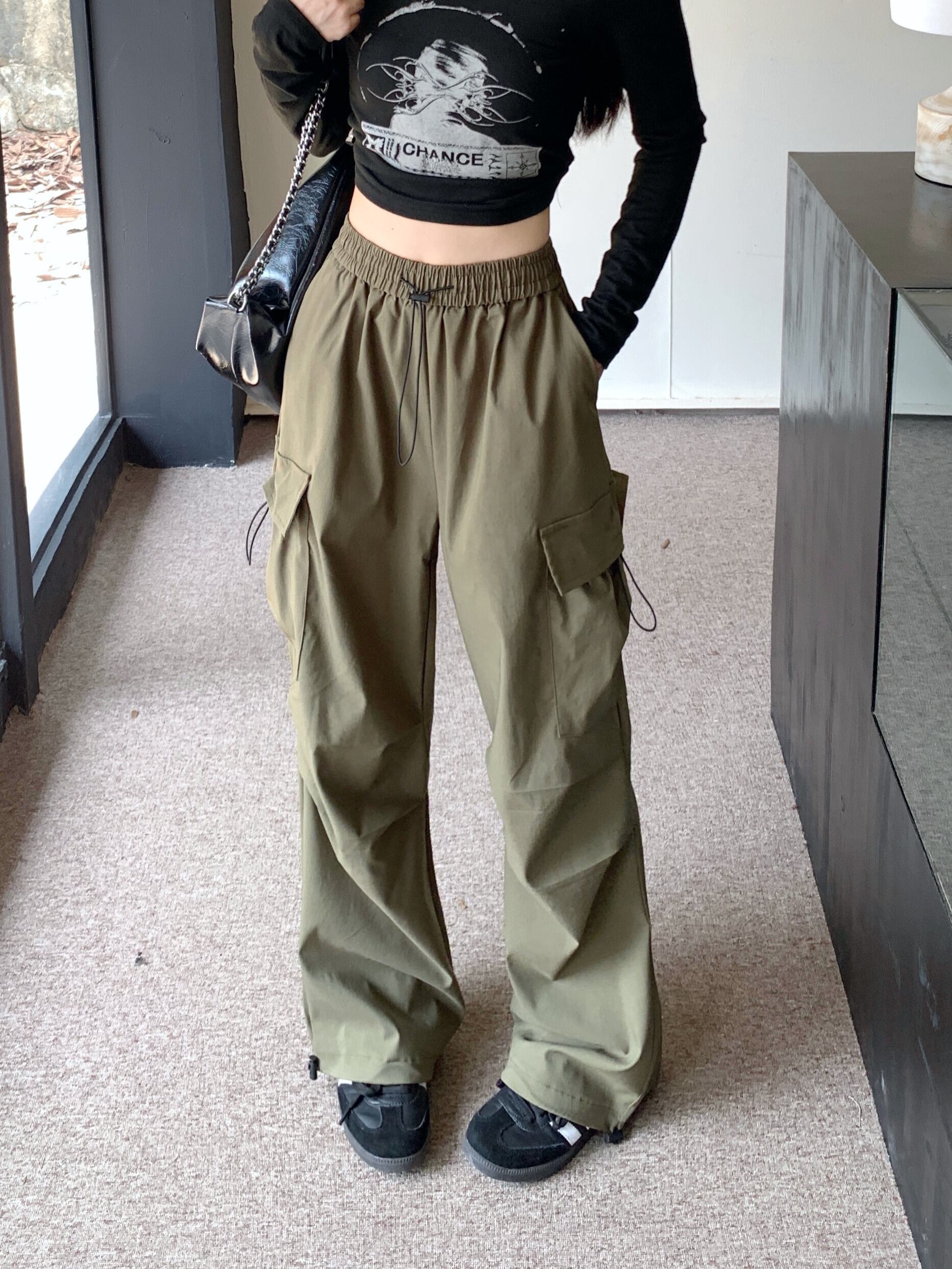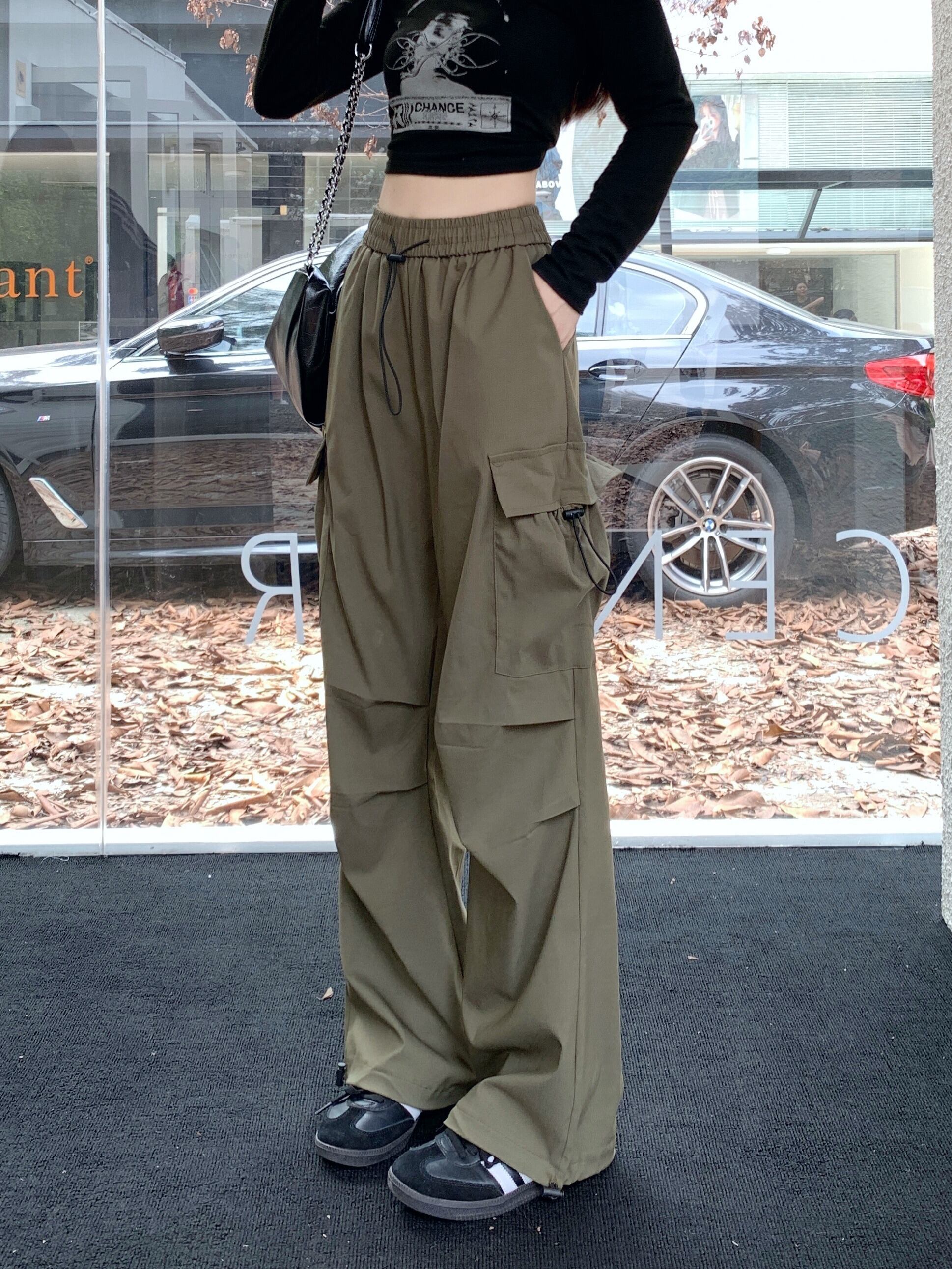 【韓国通販 dgo】3colors ハイウエスト カーゴパンツ グレー/ブラック/アーミーグリーン(W3939)トレンドアイテム