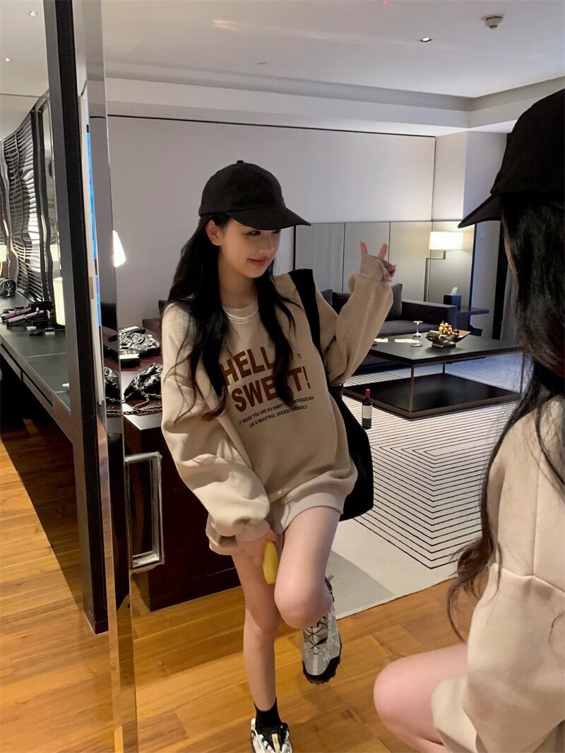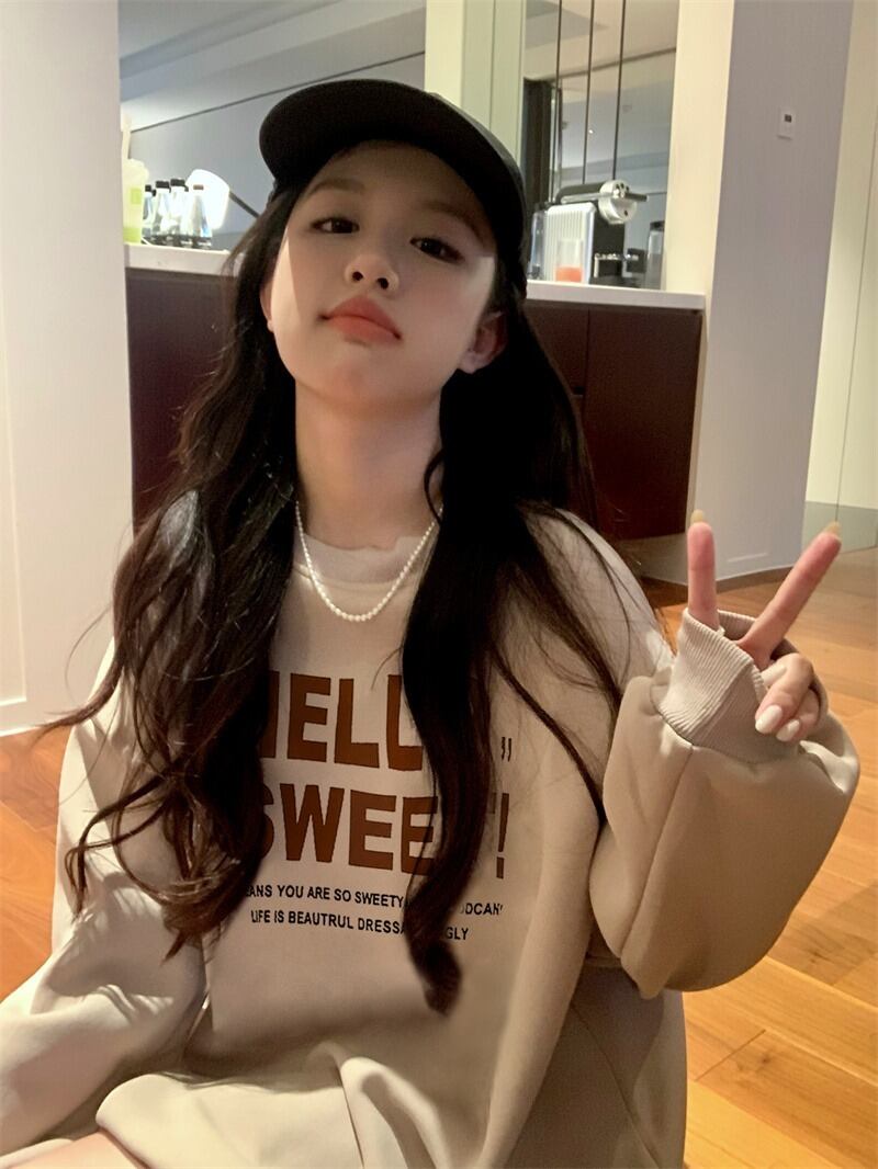 【韓国通販 dgo】ラウンドネック レタープリント スウェット アイボリー(W3897)トレンドアイテム