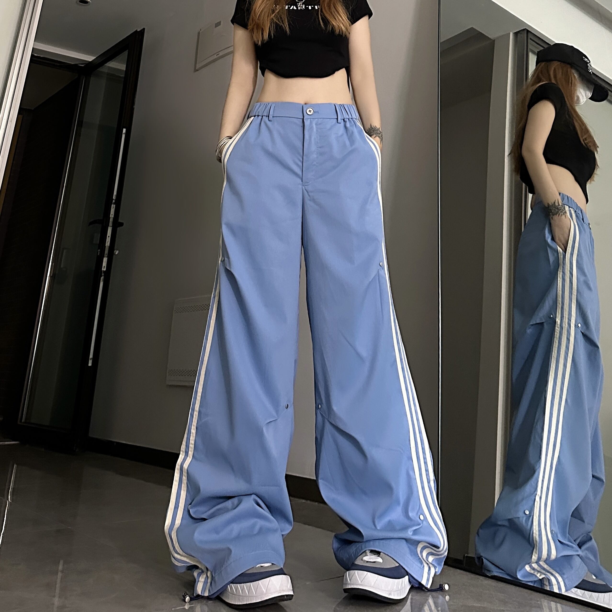 【韓国通販 dgo】3colors ワイドレッグ トラックパンツ ブルー/アイボリー/レッド(W3963)センス溢れるファッションitem